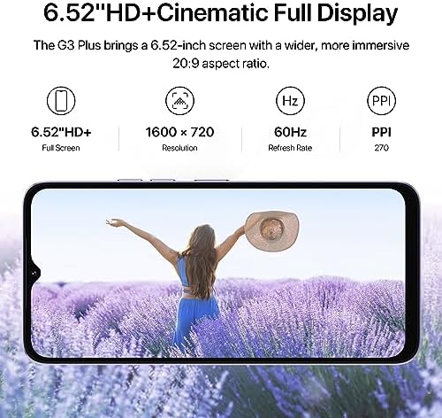ANDROID 13 MOBILE PHONE : With the latest Android 13 operating system, The latest Android 13 has many improvements, adding new features, greater emphasis on privacy and security, more secure protection of your data, more diverse themes, enabling users to create personalized interfaces and provide more convenient services for each user. 5150MAH MEGA BATTERY:G3 Plus Unlocked phones offer extremely high performance in terms of battery life and charging efficiency. Equipped with an above-average 5150mAh battery, it gives you all the power you need to get through the day. Totally relieves the anxiety of running out of power and keeps the whole day fun 6.52IN LARGE SCREEN PHONE:The unlocked mobile phone adopts a 6.52in ultra HD screen ,6.52-inch screen is wider, 120Hz Touch Sampling Rate and the 20:9 aspect ratio and dual speaker design allow you to enjoy a cinema like viewing experience,Immerse yourself in all your favorite movies, TV shows, and video games. 720*1600 resolution, each picture presents a vivid natural color, bring incredible immersive POWERFUL SYSTEM:G3 Plus is equipped with a Unisoc T606 octa-core processor, using an advanced 12nm process to achieve a balance between performance and power consumption. In detail, ,GPU with new generation arm G57 architecture, and supports eMMC 5.1 fast flash interface which brings faster file transfer. LARGE STORAGE: Unlocked Cell Phone G3 Plus contains all the performance . 4GB of RAM and an octa-core processor ensure that your applications and content run smoothly, allowing you to manage multitasking without stalling, without lag, ensuring system stability and a pleasant mobile experience. The 128GB of built-in storage ensures you can take all your favorite movies, TV shows, games and photos with you. If you need more storage? Then you can use a microSD card to expand it to 1TB. 16MP HIGH PIXEL AND SECURE FAST UNLOCK: Equipped with 16MP high resolution rear camera and excellent AI algorithm image optimization, you can easily face a variety of shooting scenes, take sharp photos to make your works more vivid and clear,8MP front camera, perfect selfie camera, make your photos more striking. With side fingerprint and face unlock support, it's faster and easier to unlock the phone in the blink of an eye without compromising security.
