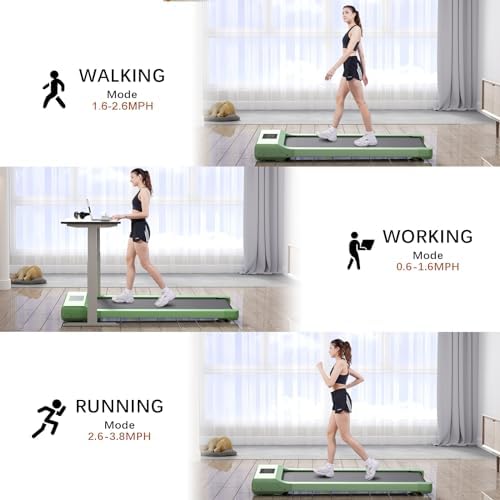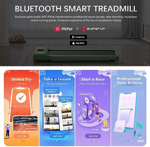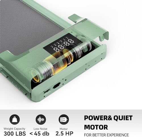 【Upgraded Powerful and Quiet 2.5HP Motor】Our under desk treadmill is equipped with an upgraded 2.5HP motor, with a maximum load of 300lbs, quiet and comfortable for WFH. 【Easy to Use】The walking treadmill is installation-free, and the 39.4"×15.4" running area gives you a more pleasant experience. You can easily read the important data on the LED display including Speed, Time, Distance, and Calories, to help you better grasp the exercise status. 【2 in 1 Walking Pad】The speed range of the walking pad treadmill is 0.6-3.8mph (1-6km/h), it is not only for walking while you are working but also for jogging to strengthen your immune system when you are free 【Simple Design, Born for Home】This treadmill machine is only 45.85 lbs and easy to move with wheels, it is slim in thickness and can be easily stored under the sofa or bed to save a lot of space. 【1-year Warranty & 24-hour Online Service】We offer a 1-year warranty on our treadmills, including all accessories, if you have any questions about our products or encounter any problems during use, you can contact us via Amazon/email, our professional customer service team will provide you with a satisfactory solution 24h/7Days online for you. 【Designed by PitPat】We built the global intelligent sports community platform, PitPat APP, which covers training, events, socializing, entertainment, and other modules to meet the daily needs of running and leisure. Participating in the competition will give you the opportunity to win big bonuses, and you can also meet more friends who love running, making sports more fun.