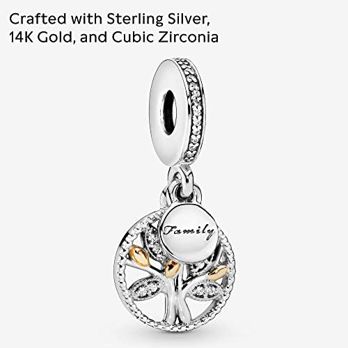 Family Heritage: A beautiful representation of how families are connected through many generations. Created with sterling silver, cubic zirconia stone-encrusted leaves and genuine 14k gold details, PANDORA's lovely family tree dangle charm is the perfect token of family love Compatible with PANDORA Moments: PANDORA Moments is a way to say something about who you are through every charm and bracelet you choose and how you choose to wear it Features CZ: Cubic zirconia could be said to be the jewel in PANDORA's crown, making up the majority of stones we use in our jewelry because it optically looks like a diamond 14k Gold & Sterling Silver Jewelry: Silver is known for its soft, white surface and is PANDORA's signature metal, with the majority of our jewelry created from it while our 14k gold creates a radiant and luxurious golden shimmer to our jewelry Official PANDORA: This authentic piece of PANDORA jewelry is ready to gift to your loved ones on Mother's Day, Christmas, birthdays, anniversaries, or any special occasions with an official PANDORA gift box #347,830 in Clothing, Shoes & Jewelry ( ) #915 in #24,998 in #25,036 in