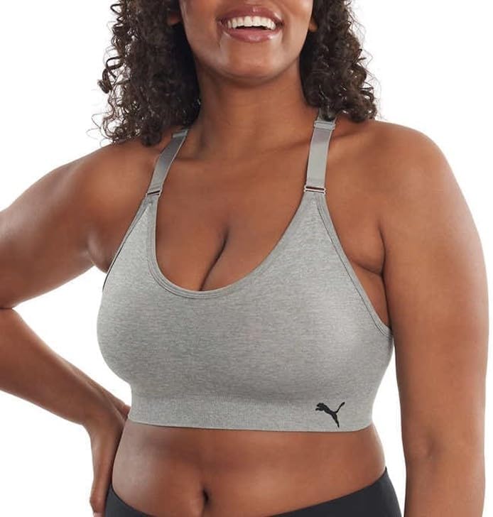 Wire-free comfort, medium impact, removable cups and racerback. Moisture wicking. 360 degree seamless stretch, structured body mapping, Puma coolcell moisture control. Black pack includes (1) Black, (1) Gray and (1) White bra. Blue pack includes (1) Blue, (1) Pink and (1) Black bra. Black & White: 90% Nylon | 10% Spandex. Blue & Pink: 90% Nylon | 10% Spandex. Gray: 50% Nylon | 40% Polyester | 10% Spandex. Sizing/Fit: S= 34A, 34B, 32C, 32D M=34C, 34D, 36A, 36B L= 36C, 36D, 38A, 38B XL= 38C, 38D, 40B, 40C Machine wash cold with like colors, use only non-chlorine bleach when needed. Tumble dry normal, low heat, do not iron. All sizes are standard but may vary from different brands. Color names are approximately defined here within the scope of arbitrary judgement. Color of actual product may slightly be different than shown on your computer due to different resolutions. #21,954 in Clothing, Shoes & Jewelry ( ) #160 in