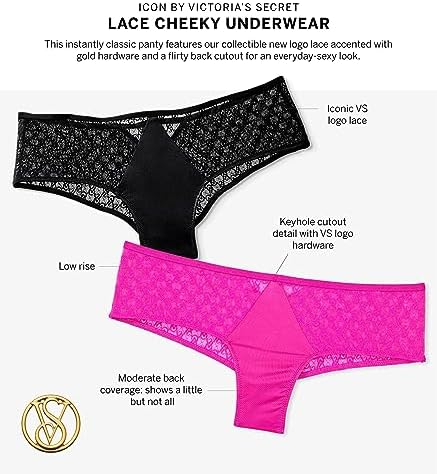 Introducing the perfect pairing with our Victoria's Secret Icon Demi Push Up Bra, the Icon T-Back Cheeky Underwear. The first of its kind, this women's panty is made of sleek flat lace, crafted to be invisible under clothing and custom patterned with the Victoria's Secret monogram. Moderate back coverage for a sexier look - shows a little but not all. Featuring a strappy keyhole cutout with gold VS logo hardware. Low rise hiphugger design offers all day comfort Partially made with recycled materials