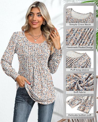 Stretchable Material: this women's long puff sleeve blouse is made of 60% polyester, 35% rayon, and 5% spandex; The material is soft, breathable, comfortable, and stretchable, not easy to shrink after washing, not pilling, lightweight, not see through Slimming Design: this long casual tunic top for women shapes with a crew neck, long puff sleeves, and front pleated design, suits lots of body types; The pleated style in the middle gives a slimming effect to the waist as it cinches it in and looks elegant; The elastic cuffs don't leave marks on your arms; This loose blouse is long enough to cover your tummy and bum; If you like the style of dressy casual top, we will provide more colors and patterns in the future Delicate Collocation: the dressy top is good for wearing casually or dressing up; It can be worn alone or under a jacket, blazer, or cardigan, and pair it with your favorite denim, a formal skirt, leggings, or dressy trousers to create different looks Various Occasions: these long sleeve shirts for women are typical 2024 trendy summer, or fall t-shirts; With their dressy design, they can be worn on any occasion, be it a corporate event, a casual outing, or a classy party; This dressy casual t-shirt for women is suit for casual occasions, business, work, daily, office, travel, running, home wear or party, holidays, new year, school, street look, dating, beach, and more Clothing Care: please refer to the picture of the size chart and choose your size according to it; These women's long sleeve blouses are stylish and comfortable, easy to maintain; They can be hand-washed or machine-washed on a gentle cycle and hung to dry, and do not bleach #4,687 in Clothing, Shoes & Jewelry ( ) #66 in