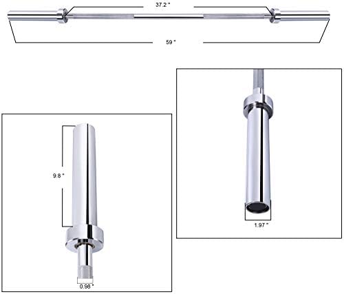 5FT long Bars are chrome plated with solid steel construction for repeated use and long lasting Multiple knurling positions and lengths for your convenience and safety. All bars are rated 700-Pound capacity 1.97" bar end diameter to ensure bars fit all standard plates with holes at 2"; Can be used with dumbbell plates too Note: Bars only. Plates and collars are not included