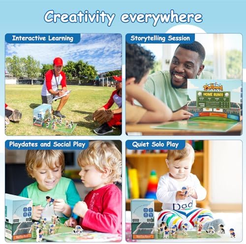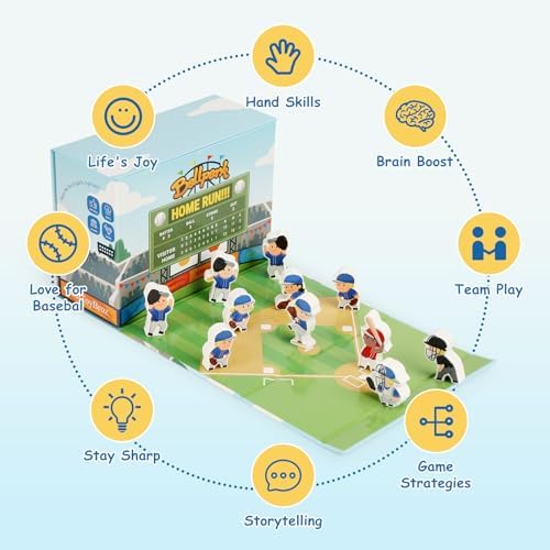 Toddy Woody Baseball Playset Toy,Baseball Basics Educational Tools,Includes Wooden Player Figures,Cardboard Ballpark Stadium,Sports Board Game,Mini Table Pocket Baseball for Toddler Toy,Baseball Intro