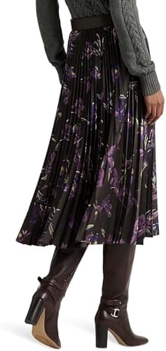 Turn heads with this LAUREN Ralph Lauren Floral Pleated Satin Charmeuse Skirt. The effervescent sunburst pleats and glossy satin charmeuse combine to form this statement-making midi skirt, which is updated with the season's painterly floral motif. Th 60% recycled polyester, 40% polyester. Hand wash only.