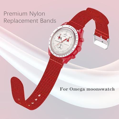 【Compatibility Models】Weclome to Wizvv Store! This Band Replacement Compatible with Omega x Swatch Moonswatch Speedmaster, and also fits any 20mm lug width watches. Whatever you look for an Omega Swatch Moonwatch Speedmaster strap for Mercury, Venus, Earth, Mars, Jupiter, Saturn, Uranus, Neptune, Pluto, Sun, and Moon in general, our selection has you covered. Please check your watch model before purchasing. (No Smartwatch included). 【Robust & Durability】The 20mm Omega watch bands are made of durable nylon material, more robust and light to wear. A wild adventure going on when you wear it. With a nice sheen to it, revealing luxurious from understatement look. It’s a real "a Huge Wristed wears a little" watch band. The loop won't too high, appropriately sized for two straps to fit through. Particularly suitable for Industrial work or a mount climbing trip. 【Adjustable and Integration】Fit for 6.2-8.2 inches wrists(160mm-210mm), the watch band replacement with steel buckle & stuck hole, you can adjust the length of the strap to fit your wrist possibly to the extend. Our moonswatch straps are easy to install and remove, package include strap * 1, pins * 2, tool * 1. 【Beautiful Gift】Multiple colors for choice! Choose the appropriate color of watch bands according to your dial, to create a classic/stylish/fresh/vibrant look at your will to suit for different occasion. Meanwhile, it's a perfect gift for your family, lover and friends during Thanksgiving Day/ Christmas/ Valentine's Day/ Mother's Day/ Father's Day. 【Excellent Shopping Experience】Wizvv provide a wonderful shopping experience! Any damage to the strap itself (including damage caused by personal installation) can be returned and exchanged free of charge. If you have any problems during using the smart watch bands, just contact us without hesitation and then we will offer a proper solution. #179,071 in Clothing, Shoes & Jewelry ( ) #287 in