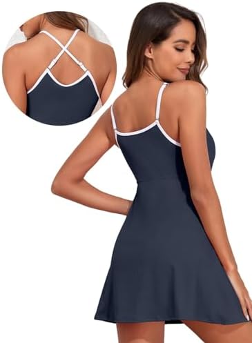 【One Piece Swimdress】 Flattering and practical swim dress with built in short with pocket, soft removable padded, adjustable straps swimdress swimsuits for women. Flowy A-lined dress shape to your flattering figure. 【Pockets Design】One-piece dress with hidden left side pocket for built-in boys shorts, adding convenience and functionality. Convenient pockets to store essentials while enjoying your swim.keep free movement. 【Versatile Wear】 Can be worn in two ways: cross-back style or with adjustable shoulder straps. 【THICK RIBBED FABRIC】 One piece bathing suits is made of breathable and quick-drying ribbed fabric. Very stretchy, comfortable and not see-through. 【Occasion】 The vintage sexy one piece swimsuit is very suitable for a wife or girlfriend to travel, honeymoon or birthday gift. This push up padded swimsuit is a good choice for swimming, sunbathing, hot tub and beach walking! #8,043 in Clothing, Shoes & Jewelry ( ) #38 in
