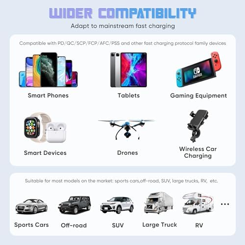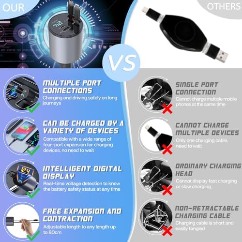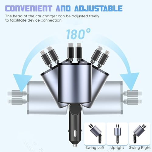 Super Fast Charger with 100W, 4 in 1 Retractable Car Charger for iPhone and Type C, Retractable Cables (31.5 inch) and 2 Charging Ports, Compatible with iPhone 15/14/13/12 Pro Max XR,iPad,Samsung