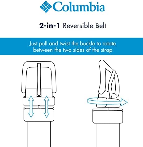 REVERSIBLE CONSTRUCTION: The reversible design has a rotative square buckle with an engraved Columbia logo that you can reverse with ease. Simply pull up the buckle at the hinge while rotating it and put it back in place to use your belt one way or another. STYLE: This 2-in-1 versatile belt from Columbia offers up double the styling options while buying just one belt. The casual design of this roller buckled belt is perfect to be paired your favorite pair of khakis or jeans. SIMPLE SIZING: For best fit, order a size 2" larger than your waist size. If your waist size is 36" then order size Large (38-40). Available in sizes Small (30-32), Medium (34-36), Large (38-40), and X-large (42-44). DESIGN FEATURES: Belt strap width measures 1.5 inches to easily fit through your belt loops. Features a smooth sturdy belt strap and classic english tip shape. COLUMBIA QUALITY: Columbia is a trusted and recognized American brand. Our products are made to fit your day to day activities, but also when you grab your bag to go on an adventure. When buying a Columbia product, you know that you are buying quality #113,899 in Clothing, Shoes & Jewelry ( ) #531 in