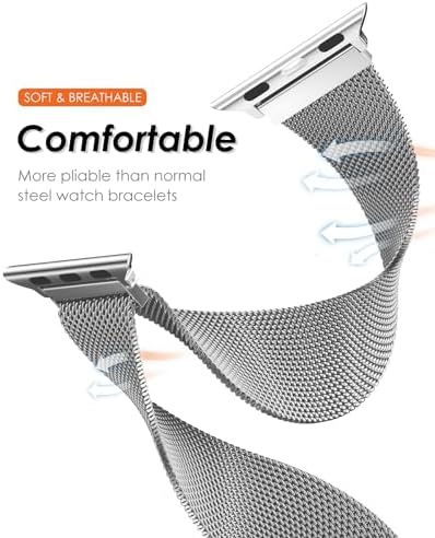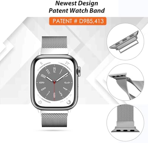 Original Patented Milanese Loop Compatible with Apple Watch Band 38mm 40mm 41mm 42mm 44mm 45mm 49mm for Women Men, Magnetic Bands for iWatch Series 9 8 7 6 5 4 3 SE Ultra 2 1 (Titanium)