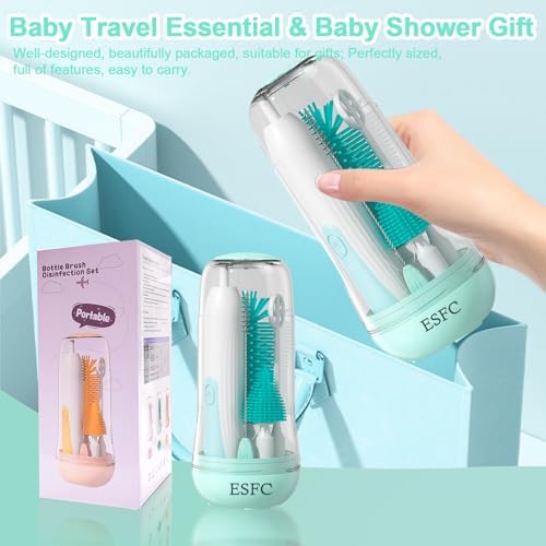 [6-in-1 Electric Bottle Cleaner Kit]--Includes electric bottle brush cleaner,water bottle brush, nipple brush, straw cleaner brush, milk frother,Travel organizer with drying base,perfect baby bottle cleaning kit for newborn parents. [Reusable Electric Baby Bottle Brush]-Two-speed mode is paired with a 1200mAh large-capacity battery and the replaceable brush heads made it can be reused again and again for a longer life. [Electric Milk Frother]--The electric milk frother accelerates the dissolution of your baby's milk powder or creates a deliciously rich, creamy foam in seconds to give your latte, cappuccino, macchiato or hot chocolate a professional finishing touch that you can enjoy at home. [Baby Shower Gift]:Automatic baby bottle brushes and electric milk frother can help new mothers save time and energy, and are completely essential for newborns.