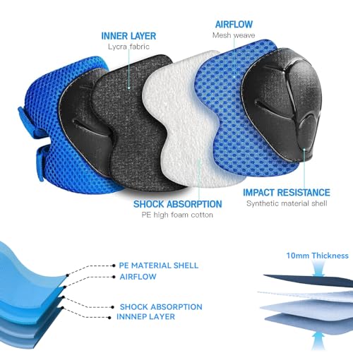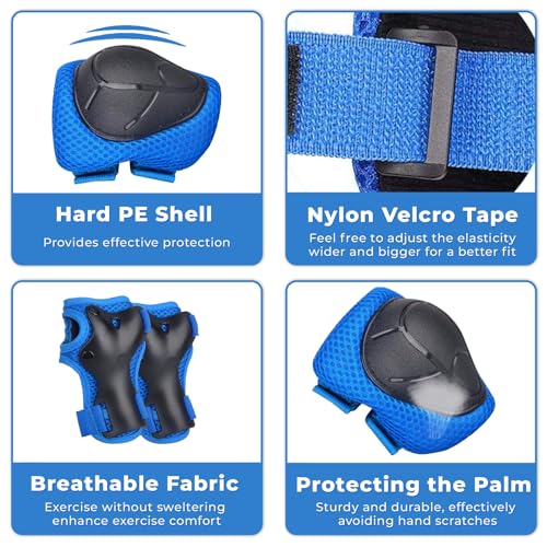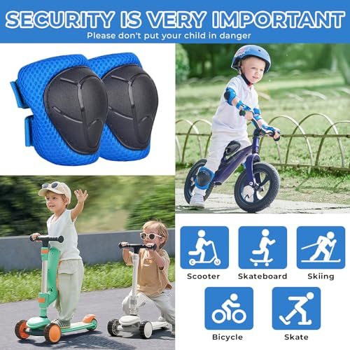 6 in 1 Kids Protective Gear Set:Protective Gear Sets includes 2 kids knee pads, 2 kids elbow pads, 2 kids wrist guards. Knee pads for kids, boys and girls aged 3-8 years old, weighting 33lb-88lb. Impact Resistance and Durability:The Knee Pads Set is made of an abrasion-resistant, shock-absorbing, durable PP shell and high-density foam pads, with a breathable fabric lining and mesh surface providing a breathable, comfortable wrapping. Adjustable Elastic Bands:Upgrade Adjustable Elastic Straps and Velcro Closures to fit at different ages children to cling to body better and moves freely at the same time. Suitable for Multiple Sports:Kids knee pads and elbow pads are perfect for scooters, e-bikes, skateboards, mountain bikes, BMX bikes, cycling, inline skating, rollerblading bikes and other outdoor sports. Kids knee pads set keep our kids away from injuries while enjoying the fun of sports. Best gift for children:Good choice for Children's Day, Christmas, Birthday, Holiday Gifts and other Holiday Gifts. Your 100% satisfaction is our motivation, if you have any questions about the knee pads, please contact us. #19,017 in Sports & Outdoors ( ) #32 in