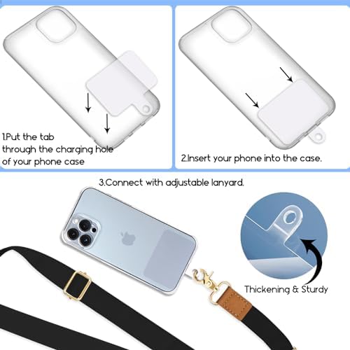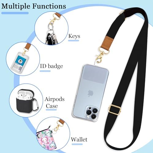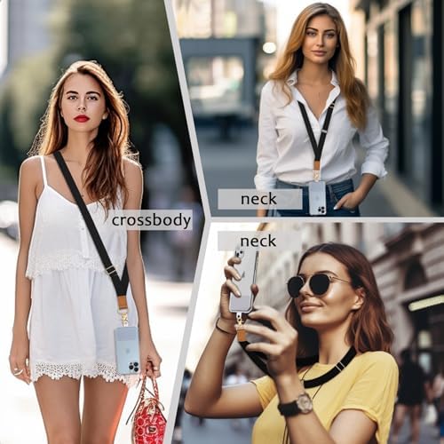 Yonlevres Phone Lanyard Crossbody Phone Strap, Black Grey Cell Phone Lanyards for around the Neck Strap Adjustable, 2 Pack iPhone Lanyard for Women Keys Case ID Badges Phone Accessories