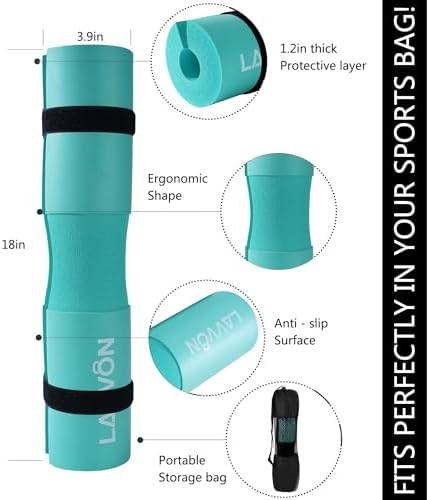 UPGRADE QUALITY: The hip thrust pad is made from soft, thick and protective high-density foam which increases durability and allows you to train in a much easier and comfortable way. ERGONOMIC DESIGN: Our squat bar pad for Olympic bars have been designed to distribute weight evenly across your shoulders, relieving you of any neck pain during squats. ULTIMATE COMFORT: Barbell Neck Pad creates a cushion for your neck, shoulders and hips, Lunges and Hip Thrusts and allows you to workout longer, Now you can add more weight to the barbell without worrying about being hurt or feeling pain in your neck or hips. PORTABLE: Barbell Neck Cushion Pad Set includes one Lightweight High Density Foam Neck Pad, Portable storage bag designed to bag take it easily to the gym or any other place and Two safety Velcro straps provides extensive protection, so it does not move around during exercises. WARRANTY: Making sure that you get a product of the highest quality is very important to us. Provides a full warranty for all of its products. If you are not satisfied with the quality of your Barbell Pad, simply send us a letter and we will either replace it or give you a refund as soon as possible.