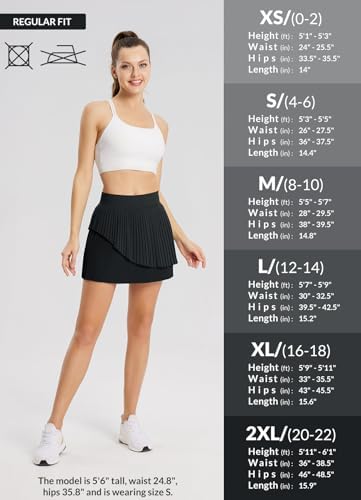 Double Layer Pleated: Women's tennis skirt with double layer airy pleats adds movement to your match, this cute and breezy tennis skirt is made to offers more elegant look. Elastic Waistband: Women's golf skirt with a wide compression waistband for a comfy and snug fit, and the built-in short liner with silicone leg grippers offers more coverage, which is safety and comfort. 2 Inner Pockets: Women's tennis skort with inner shorts features 2 side pockets that are deep enough to hold your card, phone and tennis balls. Premium Fabric: Tennis skirts for women are made of lightweight, and UPF50+ fabric, offering you the ultimate experience when exercising.Please do not dry or iron at high temperatures beacause it may damage the pleats of the skirt. Occasions: Pleated tennis skirt is perfect for tennis, golf, pickleball, running, workout, outdoor sports, or casual wear. #61,811 in Clothing, Shoes & Jewelry ( ) #52 in #91 in