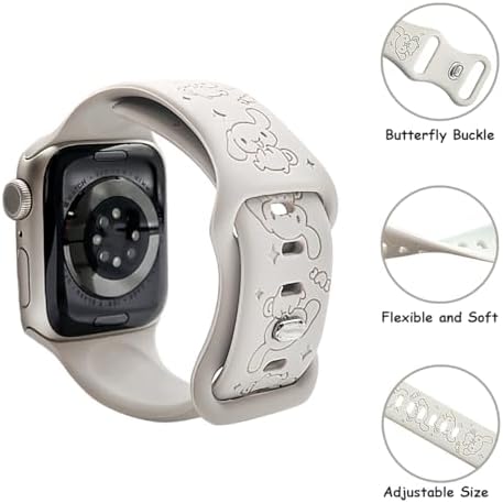 【Unique Cartoon Engraved】 The strap is engraved with cute cartoon patterns, Various patterns match different colors make your iwatch unique in any occasions. A great choice of gift to women, girls. 【Premium Material】The cute engraved apple watch bands made of persistent and premium soft silicone material, lightweight, skin-friendly, smooth surface, no irritation to the skin, also sweat & water resistant. The super soft silicone is great for leisure and sports, It is the best choice for your work and life. 【Perfect Fit】These cute cartoon engraving bands have two sizes for you to choose from. S (38mm/40mm/41mm) size fits 5.1"-7.5"(130mm-190mm) wrist; L (42mm/44mm/45mm/49mm) size fits 5.1" - 7.8" (130mm-200mm) wrist. The adjustable clasp made it suitable for most wrist sizes. 【Compatible Models】Our cute engraved replacement bands are compatible with apple watch 38mm 40mm 41mm 42mm 44mm 45mm 49mm, suitable for apple watch ultra, apple watch SE, iwatch series 9, series 8, series 7, series 6, series 5, series 4, series 3, series 2, series 1, all versions. 【Easy Installation & Removal】Our apple watch bands comes with watch lugs on both ends, which locks onto your Apple Watch interface precisely and securely. Easy and direct installation and one button removal. #17,481 in Cell Phones & Accessories ( ) #1,706 in